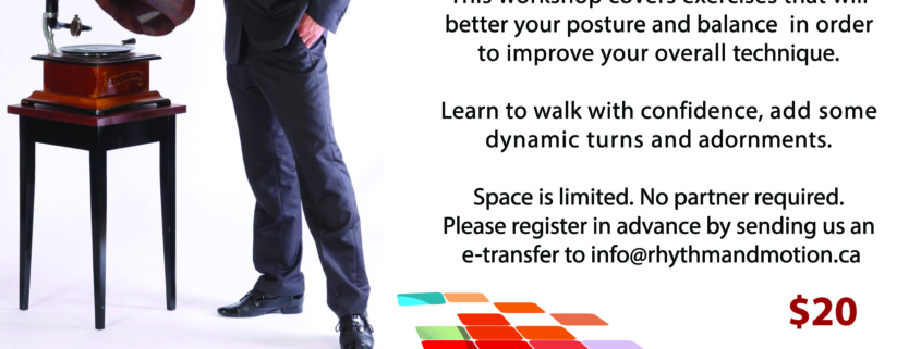Space is limited. No partner required. Please register in advance by sending us an etransfer to info@rhythmandmotion.ca or purchase ticket from this page.