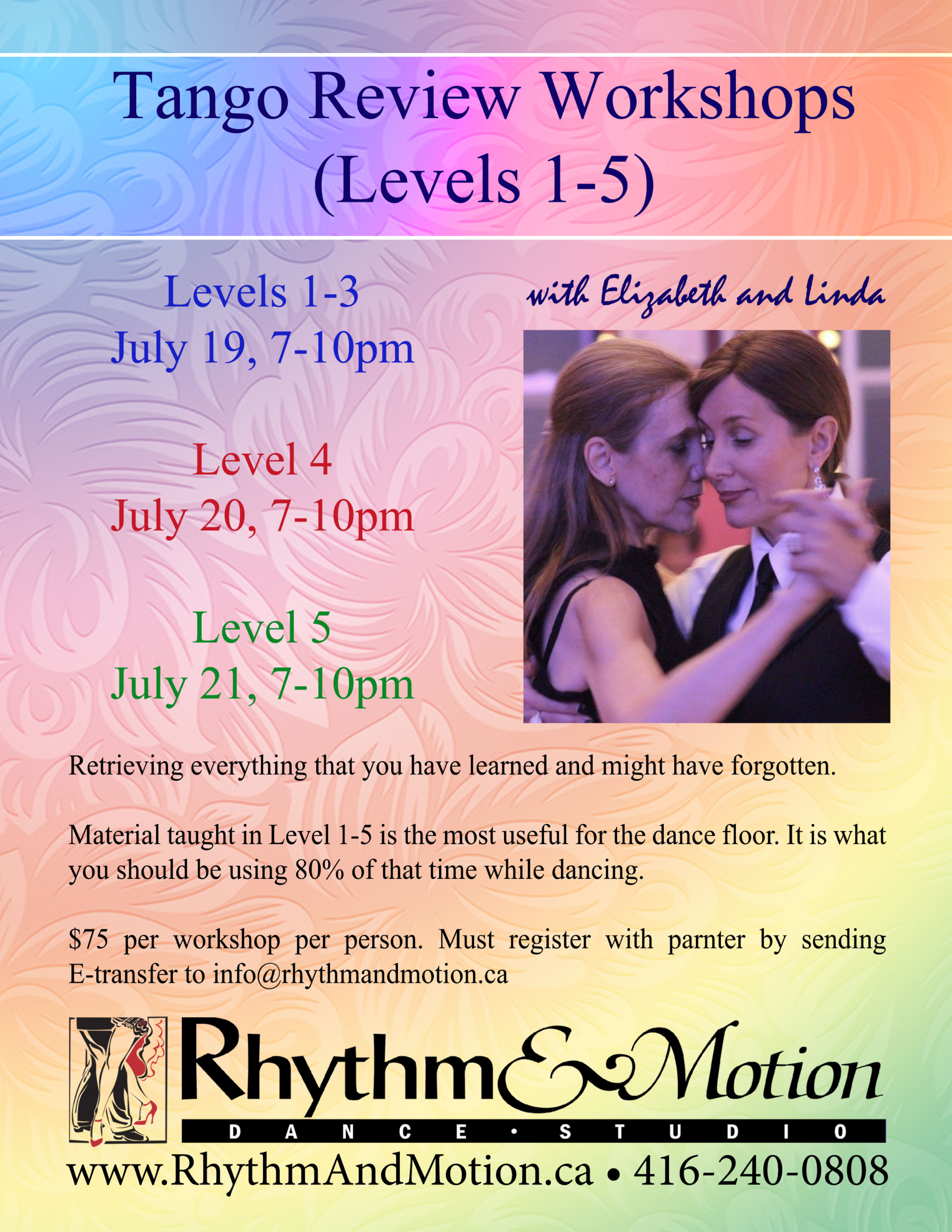 Space is limited. Please register with a partner in advance by sending us an etransfer to info@rhythmandmotion.ca