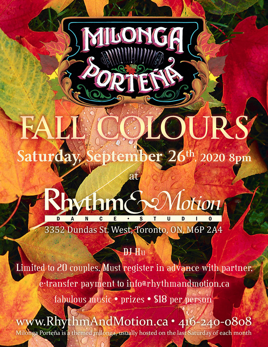 Rhythm & Motion Dance Studio 3352 Dundas St West, Toronto, OntarioWe are aware that some of you have been having trouble finding a partner so we have decided to hold a SINGLE’S TANGO MINGLE (free) this Saturday Sept. 12th at 3-4pm (after technique class) in order to give you the opportunity to find a possible partner for the classes starting next week.
