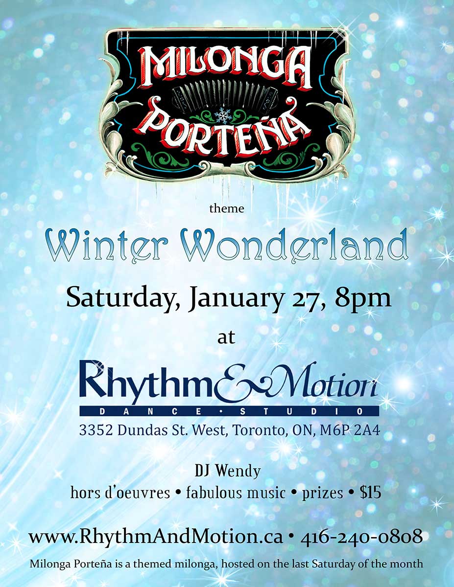 Rhythm & Motion Dance Studio 3352 Dundas St West, Toronto, OntarioTopic: Leadership in Tango : Whose Musicality (All levels) Using simple to more complex patterns, this workshop will focus on the leader’s options to either make a musical interpretation or to give it to the follower who, in turn, must become the leader of her own movement. An eye-opener for dancers of all levels who […]