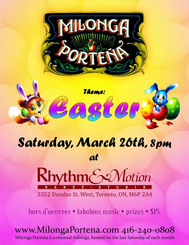 Rhythm & Motion Dance Studio 3352 Dundas St West, Toronto, OntarioMilonga Portena – Easter