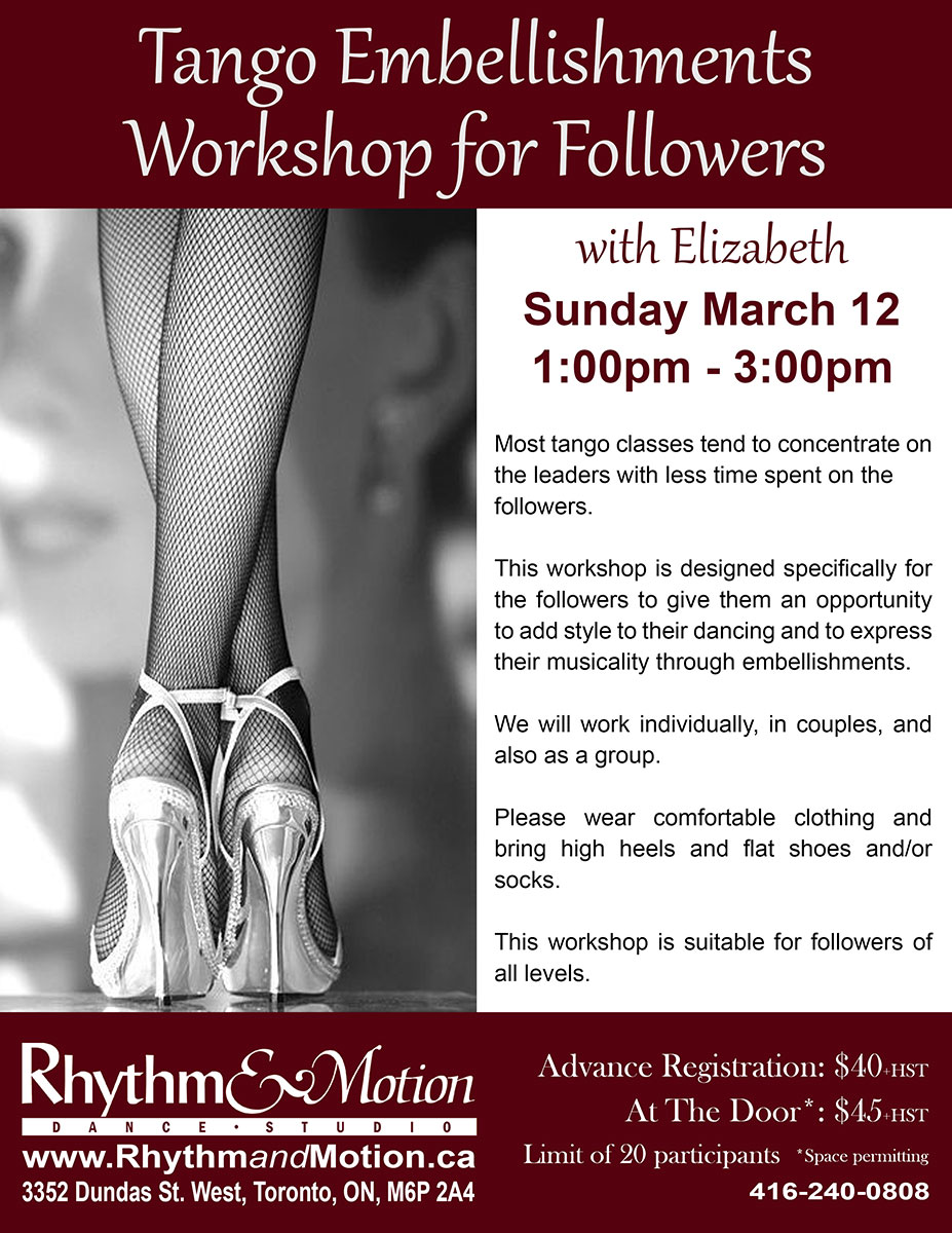 Rhythm & Motion Dance Studio 3352 Dundas St West, Toronto, OntarioTango Embellishments Workshop